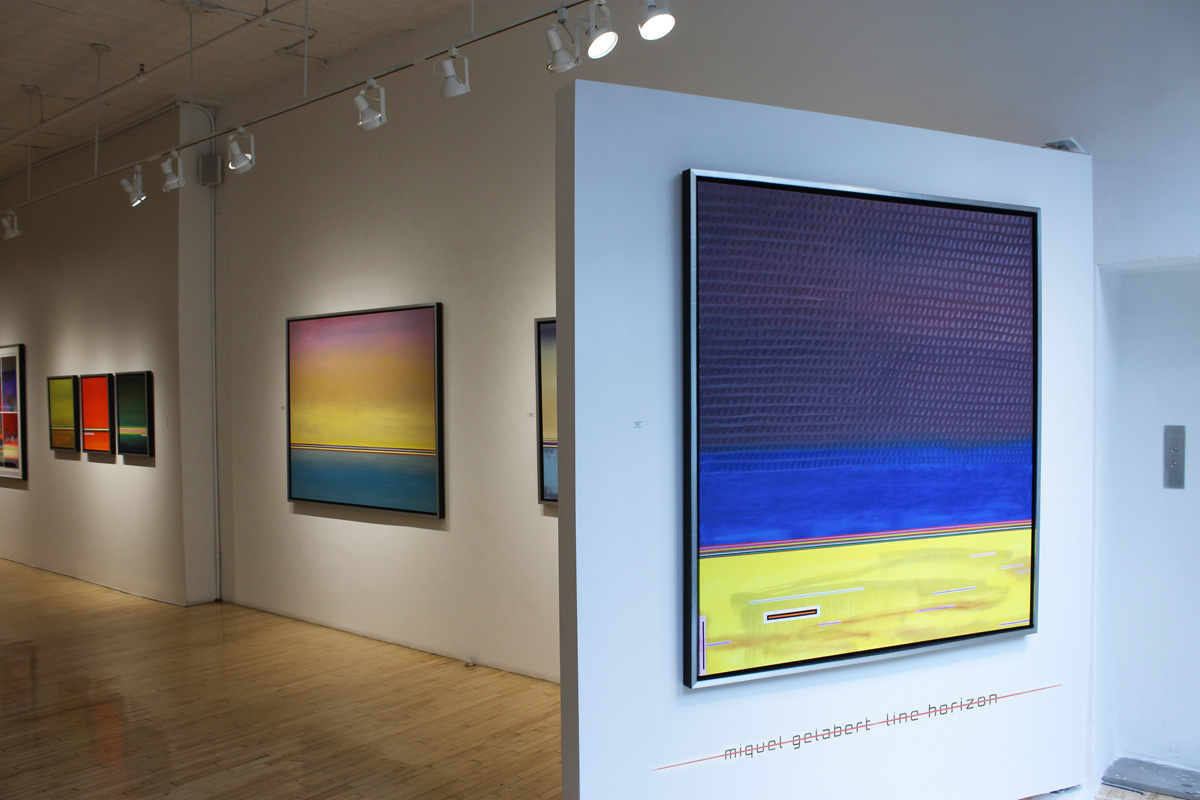 Highlights of the exhibition include the Noct-Geom series with its daring use of color and geometry, the minimalist landscaper, Geomrise, and the vibrant horizon-scapes in the Paisatge de Juny series. The paintings in Line Horizon represent a significant moment in the maturation of Gelabert’s artistic vision.