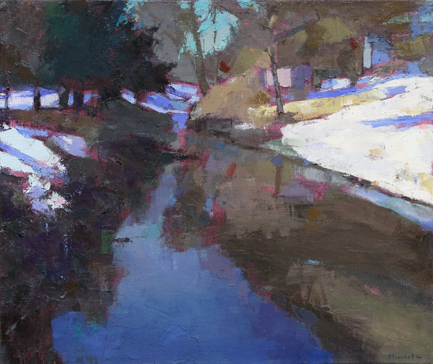 SOLD Winter Brook, Oil on canvas, 20 x 24 inches, 2020