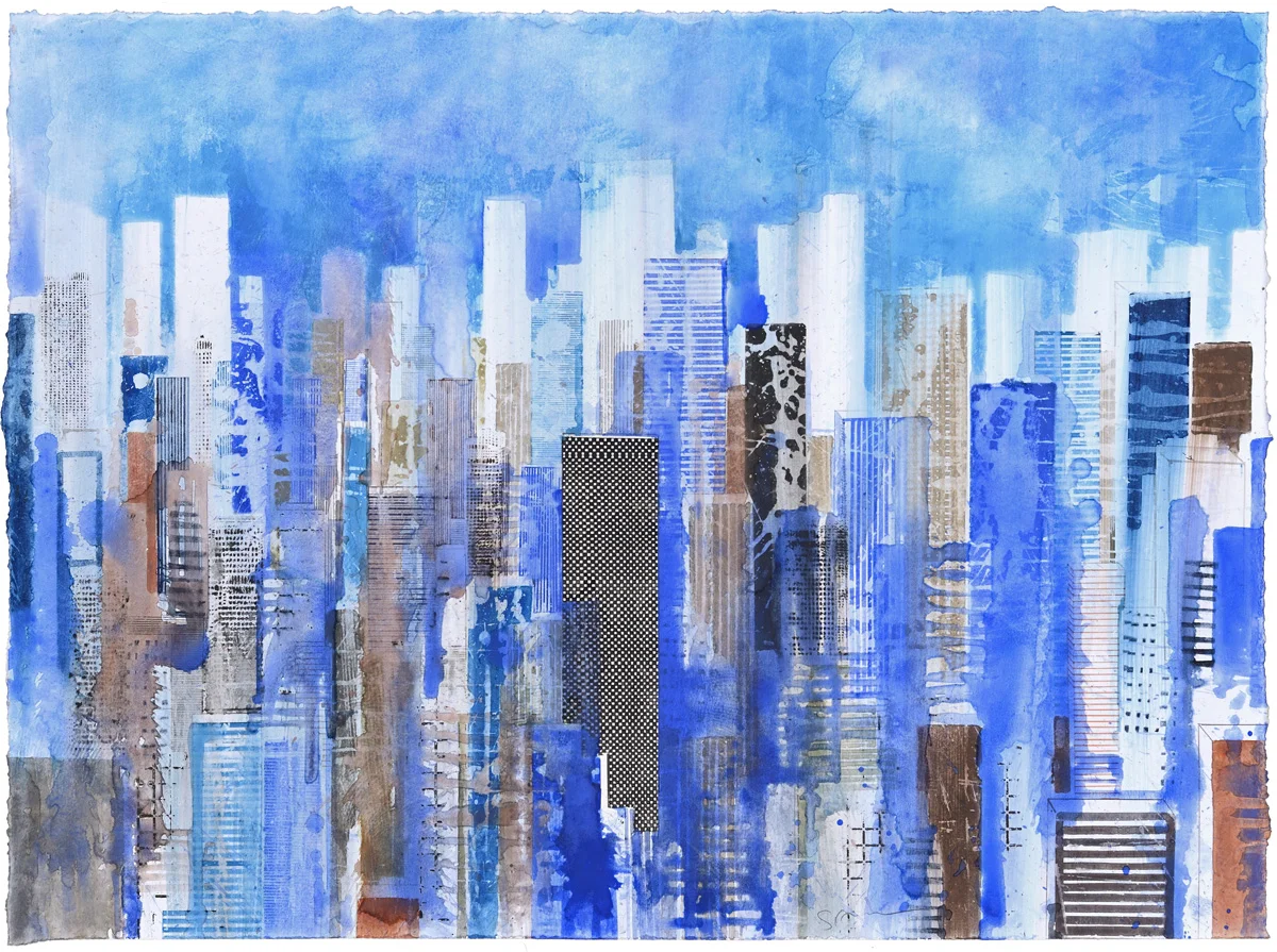 NY Blue and Brown, watercolor, 53 x 74 cm, 21 x 29 in, 2015